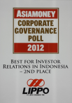 Received "Best for Investor Relations in Indonesia 2nd Place” for corporate governance poll 2012 from Asia Money magazine based in Hong Kong