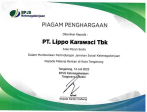 Indonesia Green Award 2019 from La Tofi School of CSR in the category of saving water resources through WWTP, WTP and Pond Retention