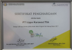 Lippo Karawaci received Top Ten Developer in Indonesia award in 2014 from BCI Asia. The Awards recognizes developer and architecture firms with the highest value portfolios of projects during the last full calendar years.